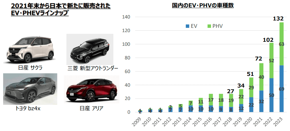 世界的にはSUVタイプのEVが伸びている一方、日本では脱炭素社会の実現に向けて自家用乗用車の電動化が特に重要視されており、生活インフラや街の規模に適した小型EVの提供が期待されています。