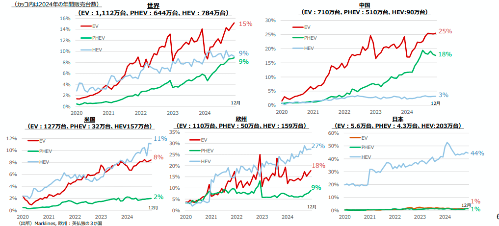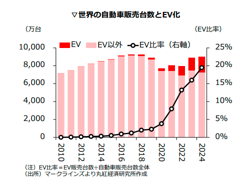 すでに中国や欧州では新車販売の2割超がEV車を占めており、世界ではEV比率が急速に拡大していることから、この割合は今後さらに拡大する見通しです。